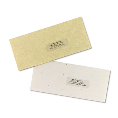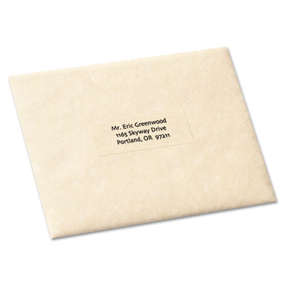 Labels virtually disappear on white or colored stock. Creates a clean, custom appearance. Label Size - text: 1 x 2 13/16; Label Color(s): Clear.