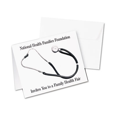 Create custom cards perfect for invitations, announcements and other mailings 8-1/2 x 11 sheets perforated for easy separation It's easy to Just Click & Create™ with Avery® Templates in over 100 popular software programs. Heavyweight stock is coated for vibrant color. Includes coordinating envelopes. Paper Color(s): White; Card Height: 4 1/4"; Card Width: 5 1/2".