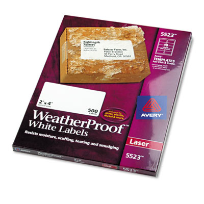 AVE5523 White Weatherproof Laser Shipping Labels, 2 x 4, 500/Pack By AVERY-DENNISON