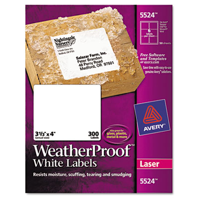 AVE5524 White Weatherproof Laser Shipping Labels, 3-1/3 x 4, 300/Pack By AVERY-DENNISON