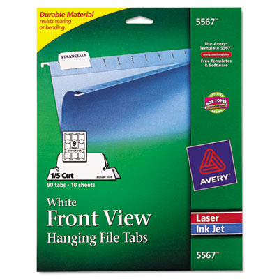 AVE5567 Print/Write-On Hanging Tabs, 1/5 Tab, 2 1/16 Inch, White, 90/Pack By AVERY-DENNISON