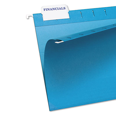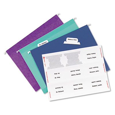 Spruce up your filing system with these self-adhesive labels. Just print using free templates or write directly on the tab, fold in half and stick together. No need for separate inserts or plastic holders. Durable construction resists tearing or bending. Improved adhesive guarantees labels stick and stay. Laser printer compatible. File Insert/Tab Type: Hanging Folder Tabs; Tab Cut: 1/5; Color(s): White.
