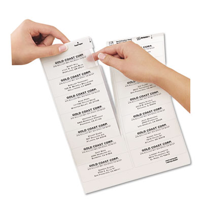 Create a professional, printed-on look. Virtually disappear on colored and textured surfaces. To speed up labeling, simply bend the sheet edge to expose the Pop-Up Edge™, peel, then fold the sheet back to flat in a jiffy. Avery® offers many easy-to-use templates and software solutions for labels. Label Size - text: 1 1/3 x 4; Label Color(s): Clear.