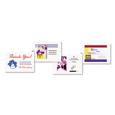 Create invitations, announcements and reminders with your printer. Heavyweight cardstock feeds automatically from paper tray. Ultrafine perforations separate cards cleanly, easily. Choose from a variety of free, easy-to-use designs. Paper Color(s): White; Card Height: 4 1/4"; Card Width: 5 1/2".