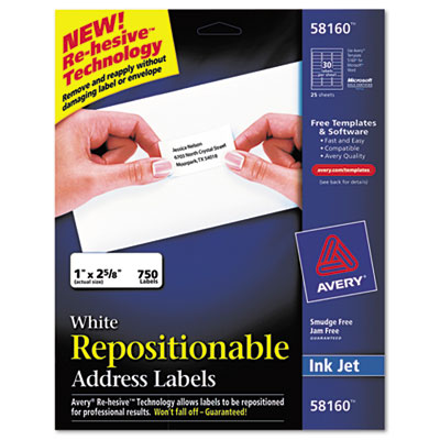 AVE58160 Re-hesive Inkjet Labels, 1 x 2 5/8, White, 750/Pack By AVERY-DENNISON