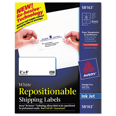 AVE58163 Re-hesive Inkjet Labels, 2 x 4, White, 250/Pack By AVERY-DENNISON