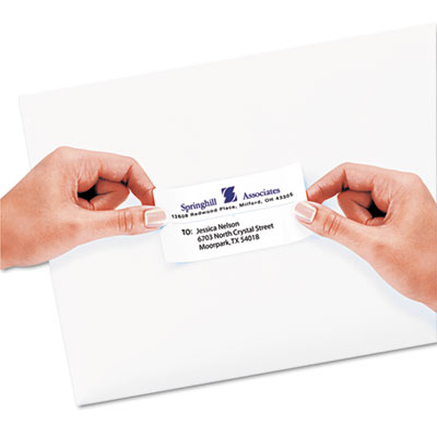 Exclusive new Re-hesive™ technology allows labels to be removed and reapplied without damaging the label or the envelope. Won't fall off -- guaranteed! Also guaranteed to be jam- and smudge-free. Avery® offers so many free, easy-to-use design and print solutions for labels. See product package for details. Label Size - text: 2 x 4; Label Color(s): White.