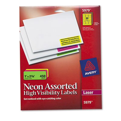 AVE5979 High-Visibility Laser Labels, 1 x 2-5/8, Assorted Neons, 450/Pack By AVERY-DENNISON