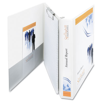 Store papers and write them at the same time. Low profile sturdy clip secures loose papers and provides support for taking notes. EZ-Turn™ ring for smooth page turning. Durable construction and unique design is ideal for frequent on-the-go reference. Pages lay flat with back mounted rings. Inside pockets keep additional material safe and secure. Capacity Range [Max]: 1 1/2"; Sheet Capacity: 375; Color(s): White.
