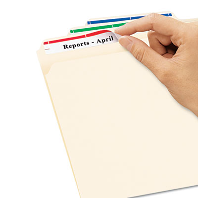- Labels stick, stay and remove cleanly to make changes and revisions to folder tabs.