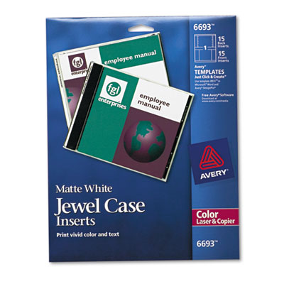 AVE6693 Laser CD/DVD Jewel Case Inserts, Matte White, 15/Pack By AVERY-DENNISON