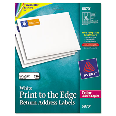 AVE6870 Return Address Labels for Color Laser & Copier, 3/4 x 2-1/4, Matte White, 750/PK By AVERY-DENNISON