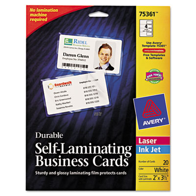 AVE75361 Self-Laminating Business/ID Cards, White Matte, 2 1/4 x 3 1/2, 20/PK By AVERY-DENNISON