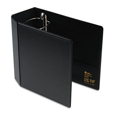 Revolutionary One Touch™ mechanism lets you open, close and lock your binder in one easy step. Gap Free™ feature prevents ring misalignment so pages turn smoothly. Locking EZD™ ring has up to 50% more capacity than the same size round ring. Back-mounted rings allow pages to lie flat. Four clear inside pockets store unbound materials for improved organization. Wide front and back panels fully cover standard dividers and sheet protectors. Exposed rivets on spine. Nonstick, heavy-duty poly won't lift ink or toner off print pages. PVC-free. For easy removal from shelf. Capacity Range [Max]: 5"; Sheet Capacity: 1,050; Color(s): Black.