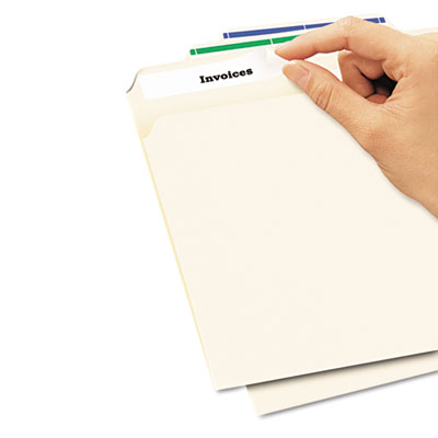 - Labels stick, stay and remove cleanly to make changes and revisions to folder tabs.