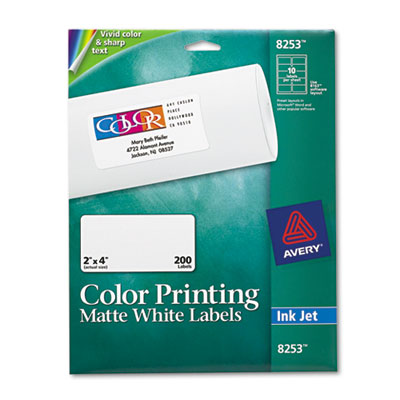 AVE8253 Inkjet Labels for Color Printing, 2 x 4, Matte White, 200/Pack By AVERY-DENNISON