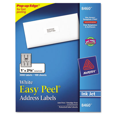 AVE8460 Easy Peel Inkjet Address Labels, 1 x 2-5/8, White, 3000/Box By AVERY-DENNISON