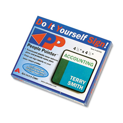 Create your own cubicle or wall sign in just minutes with the easy-to-use "Do-it-Yourself" sign. Use web-based templates to create the customized insert and print out on your laser or inkjet printer. Translucent cover reduces glare and protects sign. Frame Color: Black; Size: 4 3/8 x 4 3/8.