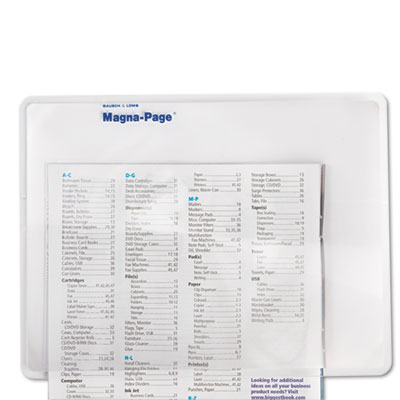 The Magna-PageŽ full-page magnifier from Bausch & Lomb is a specially designed Fresnel lens that lets you read an entire page of print with considerable ease. Fresnel lens technology permits a large-size lens to be much thinner, without the weight and volume that a similarly-sized conventional lens would require. The Magna-PageŽ full-page lens is molded (rather than hot stamped) of optical grade acrylic to provide optimum image quality. It provides instant magnification of an entire page, so you don't have to constantly reposition the magnifier as you read. Magnifier Type: Full Page; Lens Magnification: 2X.