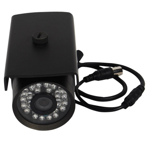 Features: Weatherproof IR Camera, SHARP 600TVL (Sharp 2365+Sharp 36B15), 24 pcs 5mm IR-LED, IR Range 20M, 3-Axis Bracket, Easy For Installation, Built-in 3.6 mm Board Lens