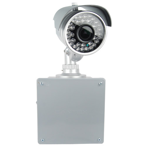 Features: Weatherproof IR Camera and DVR, Sony 540TVL, 56 pcs IR-LED, IR Range 150feet, Varifocal 4-9mm Board Lens, Motion activated and scheduled recording, Motion Detection Area Masking, Time and date stamp, Remote Control operation, MPEG4 file format, Composite video out