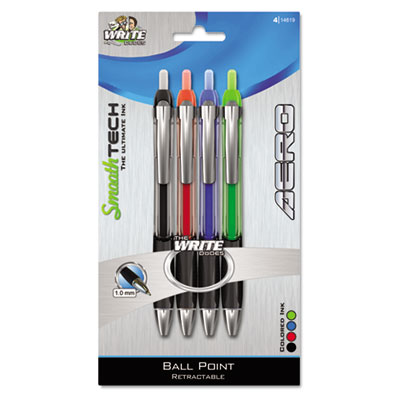 BDU14619BA48 Retractable Ballpoint Pens, Aero Smooth Tech, Assorted Colors, 4/Pack By THE BOARD DUDES