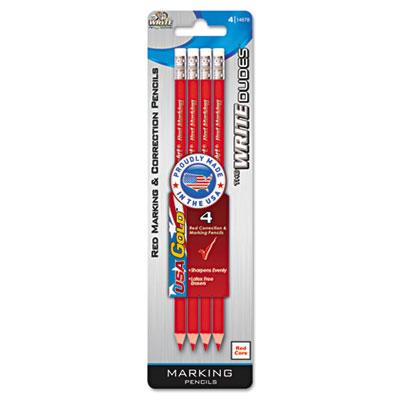 BDU14678AA24 USA Gold Checking Pencils, Red, Pre-Sharpened, 4/Pack By THE BOARD DUDES