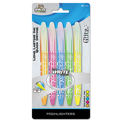 BDU14724BA48 GLITZ Series Scented Higlighters, Assorted Colors, 5/Pk By THE BOARD DUDES