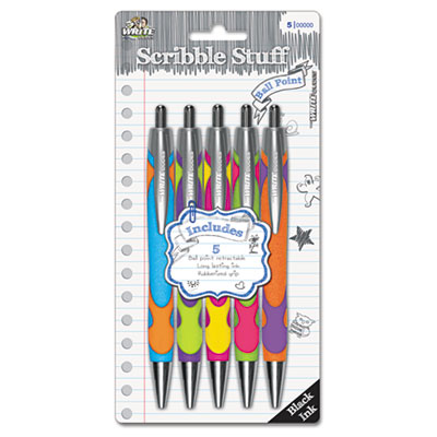 BDU14815AA48 Retractable Ballpoint Pens, Lava Series, Black Ink, Assorted Barrels, 5/Pk By THE BOARD DUDES
