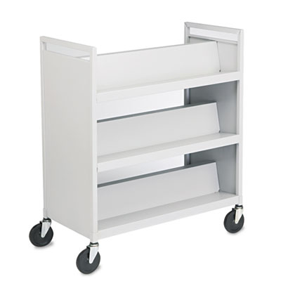 BDY541632 Double-Sided Steel Book Cart w/6 Slant Shelves, 37w x 18d x 42h, Platinum By BUDDY PRODUCTS