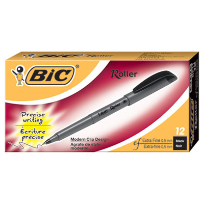 BICRF11BK Stick Roller Pen, Gray Barrel, Black Ink, Micro Fine, 0.50 mm, Dz By BIC CORP.