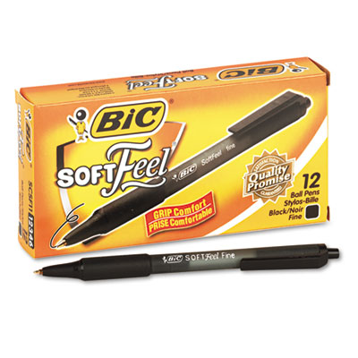 BICSCSF11BK Soft Feel Ballpoint Retractable Pen, Black Ink, Fine, Dozen By BIC CORP.