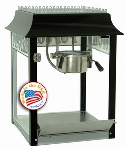 Paragon Black & Chrome 1911 4 oz. Popcorn Popper. 4 oz. – Pops 92 one-ounce servings per hour. Buy one for your home theater! Limited LIFETIME Warranty. Cart sold separately. Nostalgia combined with new technology! The antique styling of the 1911 Originals is reminiscent of the poppers used by American street vendors almost 100 years ago. It's a design that draws consumers in and looks great in a game room, too! These models pair old-fashioned flair with our newest innovations including side-hinged, anodized aluminum kettles and extruded side post construction. The 4-oz. machine pops 92 one-ounce servings per hour. Made in the USA.