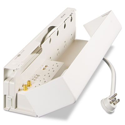 Safeguards computers and appliances with exceptional security. Features four AC block-spaced outlets. Unique closing cover and cable tray neatly organizes your cables and keeps them plugged into their outlets out of the reach of children and pets. Provides 1-in/2-out phone/fax/modem protection to keep your telephone, Internet connection, and home theater safe from damaging power surges. LED indicators allows you to easily monitor status and prevent overloads. Power cord features a space-saving right-angle plug for simple placement. Number of Outlets: 11; Joules Of Surge Protection: 4260 J; Lines: 3.