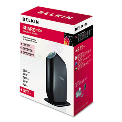 BLKF7D7302 Share N300 Wireless N+ Router, 4 LAN/1 USB Ports, 2.4GHz, Black By BELKIN COMPONENTS