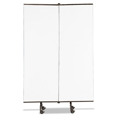 Works with the GreatDivide™ Wall System. High-pressure laminate, dry erase surface. Creates a maximum wall length of 24 feet. Caster legs with dual 2" wheels feature a spring suspension system to keep panels level. Includes two wall panels (32" wide each). Color: Gray; Overall Width: 64"; Overall Depth: 3".