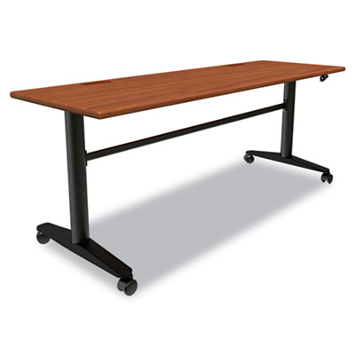The 1" thick tops flip back with a simple lever mechanism, allowing the tables to be nested for storage. Top and Base sold and shipped separately—ORDER BOTH. Top Color: Cherry; Top Shape: Rectangular.