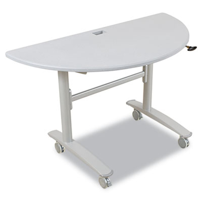 The 1" thick tops flip back with a simple lever mechanism, allowing the tables to be nested for storage. Top and Base sold and shipped separately—ORDER BOTH. Top Color: Platinum; Top Shape: Half-Round.