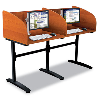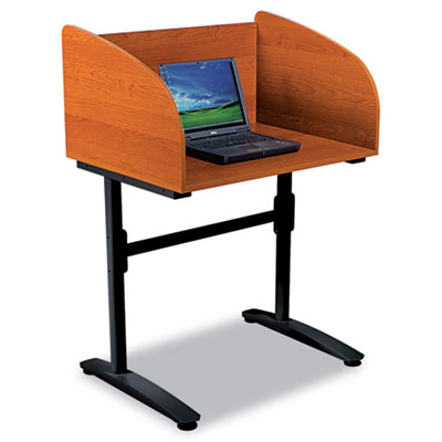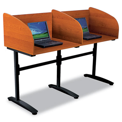 Rich cherry-finished carrel creates a private and compact work area. Durable laminate panels and powder coated steel frame. Convenient surface grommet for easy cord management. Expand your work area as needed with optional add-on units. Color: Cherry/Black; Material: Steel; Woodgrain Laminate; Overall Width: 31 1/4".