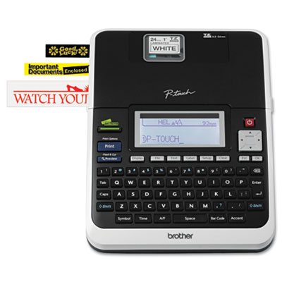 Desktop labeler prints using 8 professional fonts. Can be used as “stand-alone” labeler or connected to a PC or Mac for added functionality. Features large, graphical display with vivid backlight display. Create durable, laminated labels in a variety of colors and sizes—up to 1" wide. Quickly access over 50 pre-designed label collections with the touch of a button or use the convenient, text reminder feature to recall frequently used words. Includes AC adapter, carry case, P-Touch Editor software, USB cable and 1" starter tape. Tape measurements are approximate. Tape Size: 9/64" - 1"; Number of Printed Lines: 7; Display Characters x Display Lines: 16 x 3. **Item is refurbished-full 1yr warranty. Prepaid label return guarantee.