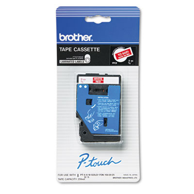 BRTTC54Z1 TC Tape Cartridge for P-Touch Labelers, 3/8w, White on Red By BROTHER INTL. CORP.
