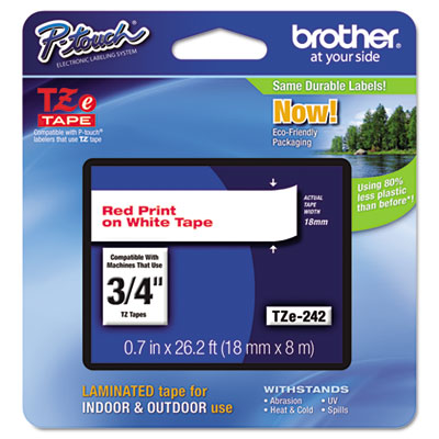 BRTTZE242 TZe Standard Adhesive Laminated Labeling Tape, 3/4w, Red on White By BROTHER INTL. CORP.