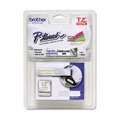 BRTTZEMQ934 TZ Standard Adhesive Laminated Labeling Tape, 1/2" x 16.4 ft., Gold/Silver By BROTHER INTL. CORP.