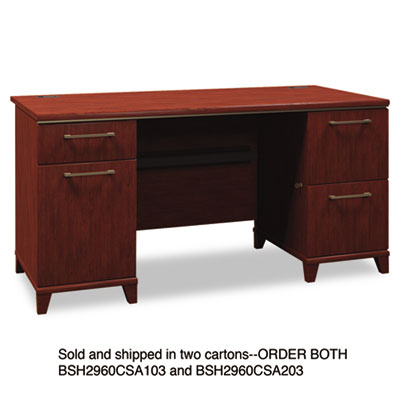 BSH2960CSA103 60"W Double Ped Desk (B/D, F/F) Box 1 of 2 Enterprise: Harvest Cherry By BUSH INDUSTRIES