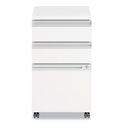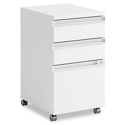 Modular furniture in step with today's evolving office environment and contemporary work styles. Configure easily with worksurfaces to create highly functional and efficient work stations. Multi-height surfaces support efficient stacking and piling. Fully assembled for ease of installation. Thermally fused laminate surfaces offer stain and scratch resistance. Lockable file drawers accommodate letter-, legal- and A4-sized files. Stainless steel ball-bearing slides assure years of maintenance free use. Color: White; Overall Width: 35 5/8"; Overall Depth: 19 1/2".