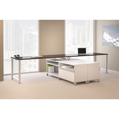 Contemporary open architecture design supports both collaborative, open-office environments where teaming is important and personal space. Diamond Coat® finish is stain and scratch resistant--looks new even after years of use. Easy to configure and reconfigure; build on as your needs evolve over time. Multi-height worksurfaces support efficient stacking and piling. Machine thread fasteners assure fast, easy and secure leg attachments. Metal support beam under work surface prevents sagging. Desk Top and Legs sold and shipped separately, ORDER BOTH. Color: Mocha Cherry; Top Shape: Rectangular.