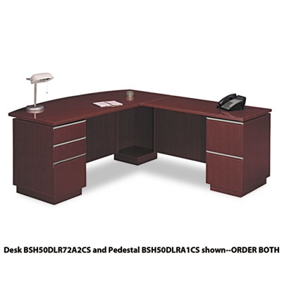 Contemporary European styling in attractive pieces that are easy to reconfigure for customized workspace solutions. Lockable file drawers hold letter- or legal-size files and features full-extension ball bearing drawer slides. Time-saving Install Ready™ construction: pedestals are shipped pre-assembled. Desktop grommets and modesty panel openings for wire management. PVC edge banding helps protect desk from bumps and scrapes. Full-width extruded aluminum drawer and door pulls are both attractive and durable. Durable Diamond Coat® finish on worksurface is scratch- and stain-resistant. Desk and Pedestals sold and shipped separately—ORDER BOTH. Color: Harvest Cherry; Pedestal Count: 2; Top Shape: Bow Front.
