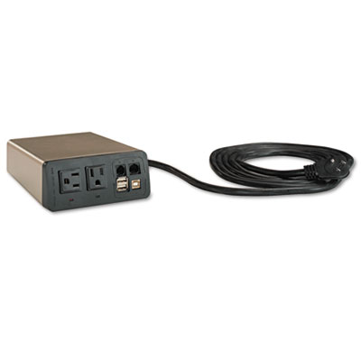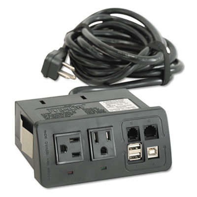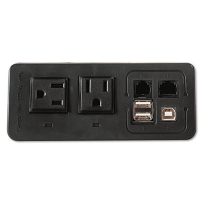 This data port is specifically designed to be used with 72" Quantum™ Series desks and credenzas. Featuring comprehensive connectivity, two AC outlets, three USB ports, an Ethernet port and a phone jack, it's the perfect single unit solution for the modern office worker. It also features versatile mounting options, as it may be fitted within the rectangular grommet found on Quantum™ Series Desks and Credenzas or be placed atop or beneath any worksurface. And with a 10 ft. power cord, you may place it nearly anywhere on, under, in or around that surface. Number of Telephone Jacks: 1; Cord Length: 10 ft.
