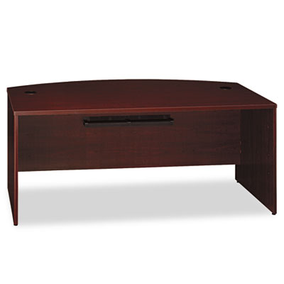Total flexibility to create administrative, professional or executive office solutions. Modular component for flexibility to create administrative, professional or executive solutions. All-melamine construction with durable Diamond Coat® worksurfaces provides superior scratch- and stain-resistance. Protective PVC edging helps reduce damage from dents and dings. Worksurface grommet for easy cord management. Color: Harvest Cherry; Top Shape: Bow Front.