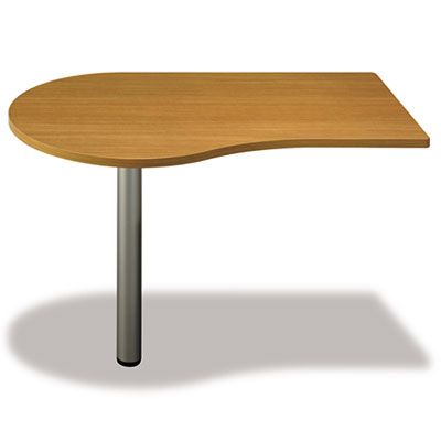 Total flexibility to create administrative, professional or executive office solutions. Scratch- and stain-resistant melamine surfaces with durable PVC edge banding to protect against dents. Rounded end allows for comfortable guest seating. Sturdy steel support post. Color: Modern Cherry; Satin Nickel; Overall Width: 47 5/8".